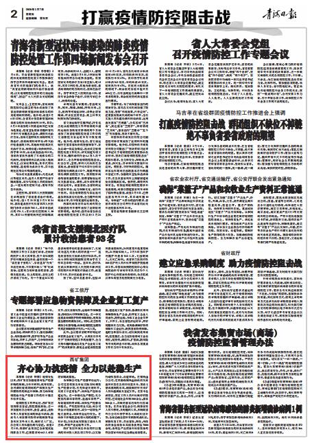 西矿集团所属各单位同样以饱满的精神投入到各项工作中,以实际行动服务群众,稳定市场。在锡铁山分公司,党员协助锡铁山镇政府及派出所民警在各路口设置关卡,顶着戈壁滩凛冽的寒风,细致做好所有来矿人员体温测量及登记工作。在茶卡盐湖景区,景区工作人员积极做好联防联控,已劝返社会车辆300余台、游客500余人,并做好游客后续行程咨询服务。在青海省盐业公司,销售客服人员不停班,及时组织人员、车辆向省外分公司和西宁市各大商超配送补货,全面启动全国所有销售网点配送、销售服务工作,青海省级、市级、州级政府食盐储备库共储备食用盐7000余吨,食用盐产品质量和库存数量均符合国家和政府应急调运储备要求。