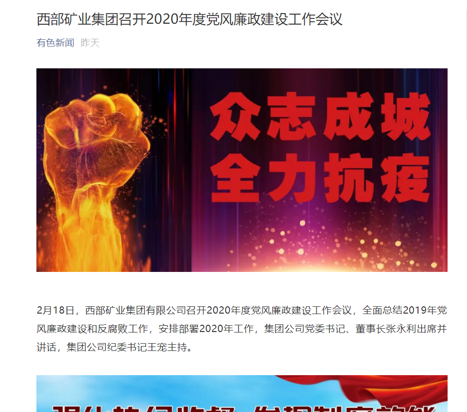 会议集中学习青海省纪委十三届四次全会精神,王宠作集团公司2019年度党风廉政建设和反腐败工作报告,并就重点抓好6项任务和46条具体措施落实对2020年集团公司党风廉政建设工作提出具体要求。肃北博伦、文旅公司、大梁矿业党委书记和锡铁山分公司、西豫公司纪委书记依次述职述廉。集团公司党委副书记李威和纪委副书记成朝阳分别对基层党组织书记、基层纪检机构负责人述职情况进行点评,对基层党组织和纪检机构2019年党风廉政建设工作给予充分肯定,对工作中存在的问题提出建议,对2020年的党风廉政建设工作提出具体要求。