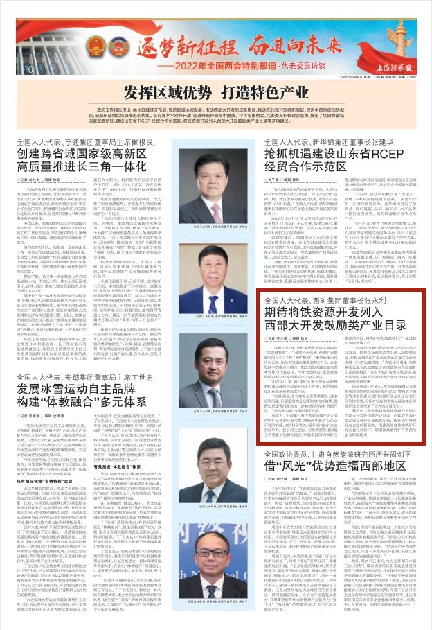 “回顾2021年,西矿集团发展的关键词是‘高质量发展’。”全国人大代表、西部矿业集团有限公司(下称“西矿集团”)董事长张永利告诉记者,他每年的建议更多聚焦于产业、企业发展中的难点与痛点,把成功的实践经验与思考转化为代表建议。今年全国两会,张永利围绕铁资源开发等话题提出了相关建议。