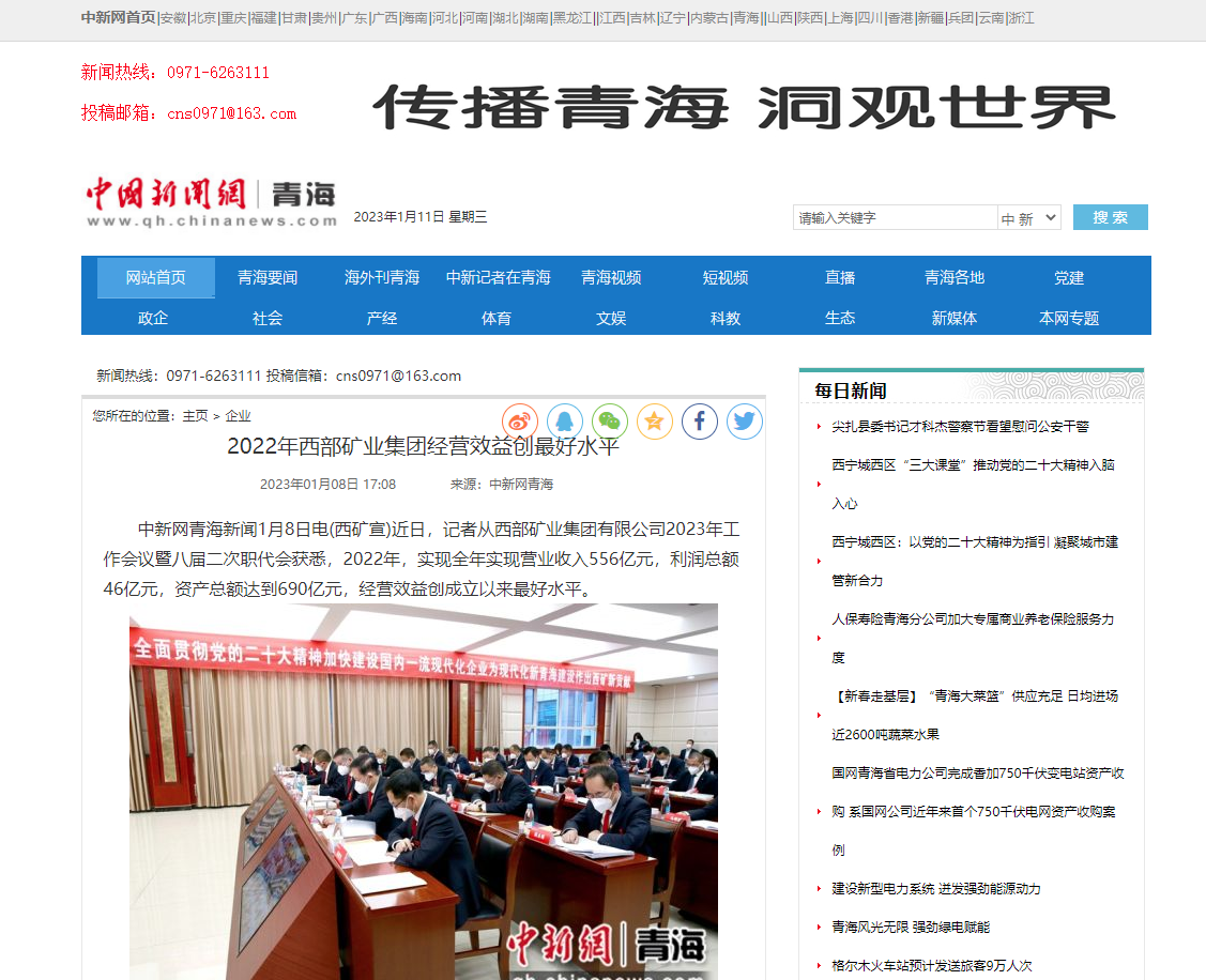 中新网青海新闻1月8日电(西矿宣)近日,记者从西部矿业集团有限公司2023年工作会议暨八届二次职代会获悉,2022年,实现全年实现营业收入556亿元,利润总额46亿元,资产总额达到690亿元,经营效益创成立以来最好水平。