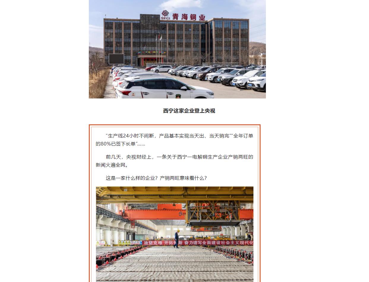 前几天,央视财经上,一条关于西宁一电解铜生产企业产销两旺的新闻火遍全网。