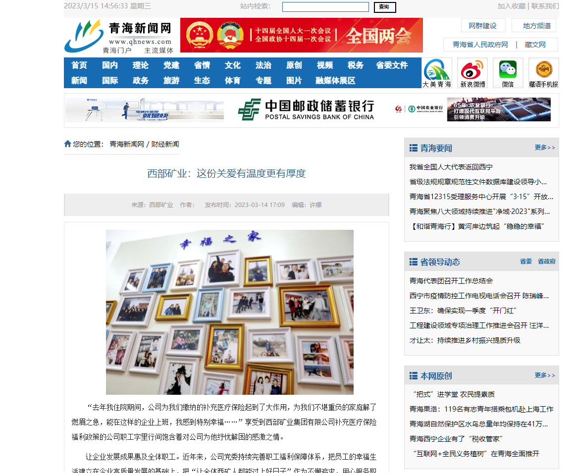 “去年我住院期间,公司为我们缴纳的补充医疗保险起到了大作用,为我们不堪重负的家庭解了燃眉之急,能在这样的企业上班,我感到特别幸福……”享受到西部矿业集团有限公司补充医疗保险福利政策的公司职工字里行间饱含着对公司为他纾忧解困的感激之情。