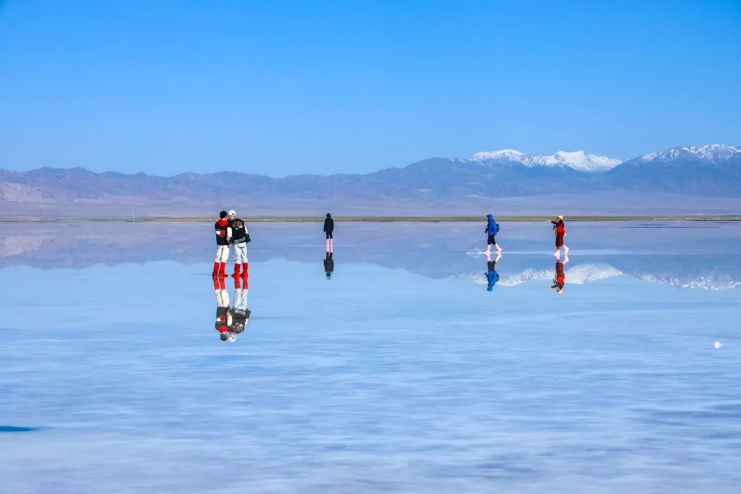 走进茶卡盐湖景区,宛若到了银装素裹的雪季。行至码头栈道,前来赏景的游客散落在景区各地,打卡拍照,为这片雪白的世界,点缀出别样的风景。