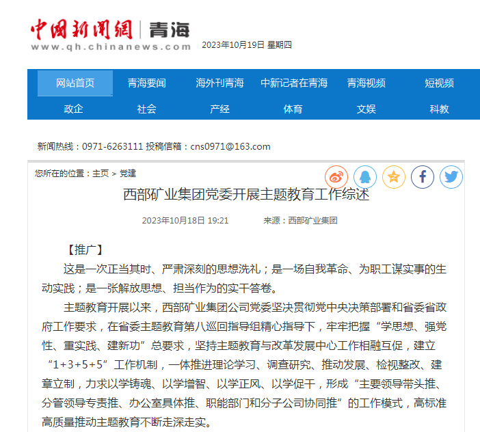 为新征程凝心聚力,为新使命砥砺奋进。西部矿业全体党员干部职工将始终以习近平新时代中国特色社会主义思想为指导,持续巩固拓展主题教育经验成果,把开展主题教育激发出来的热情和干劲转化为干事创业、奋勇争先的强大动力,聚焦公司生产经营重点工作,大力弘扬“三坚”精神,为建设“全省领先、国内一流、国际知名”企业集团凝聚强大合力,为现代化新青海建设作出西矿新贡献,蹄疾步稳奋力书写中国式现代化国企新答卷。