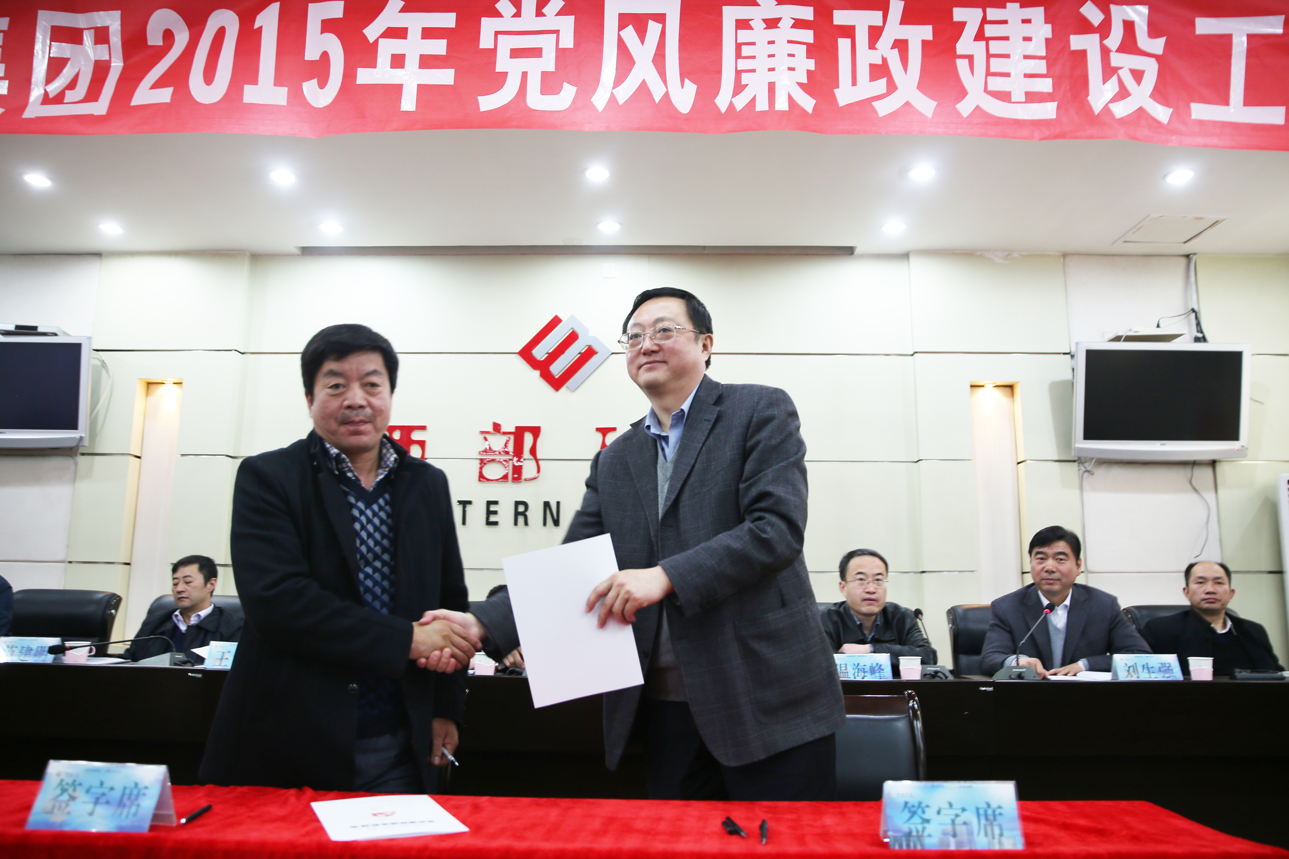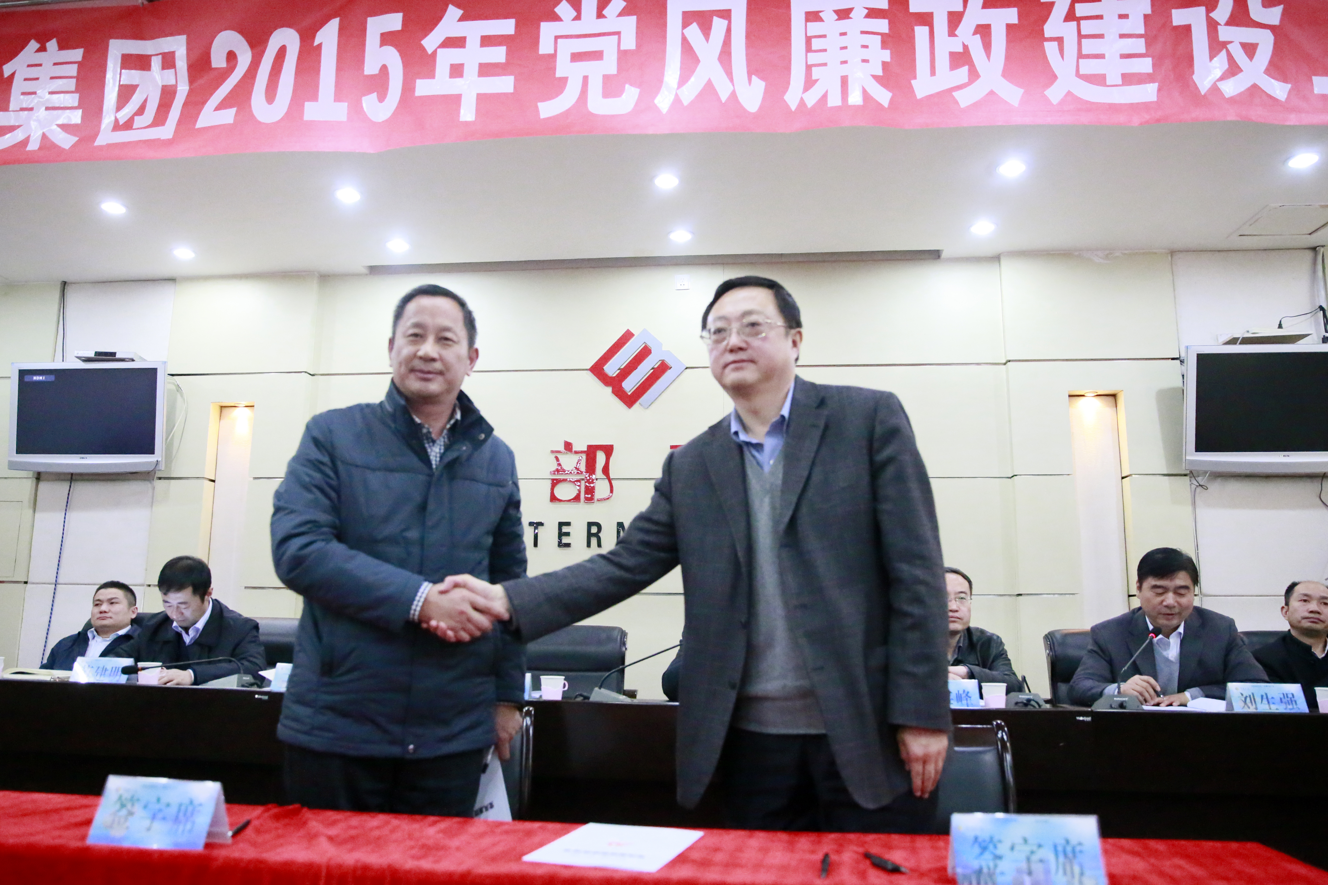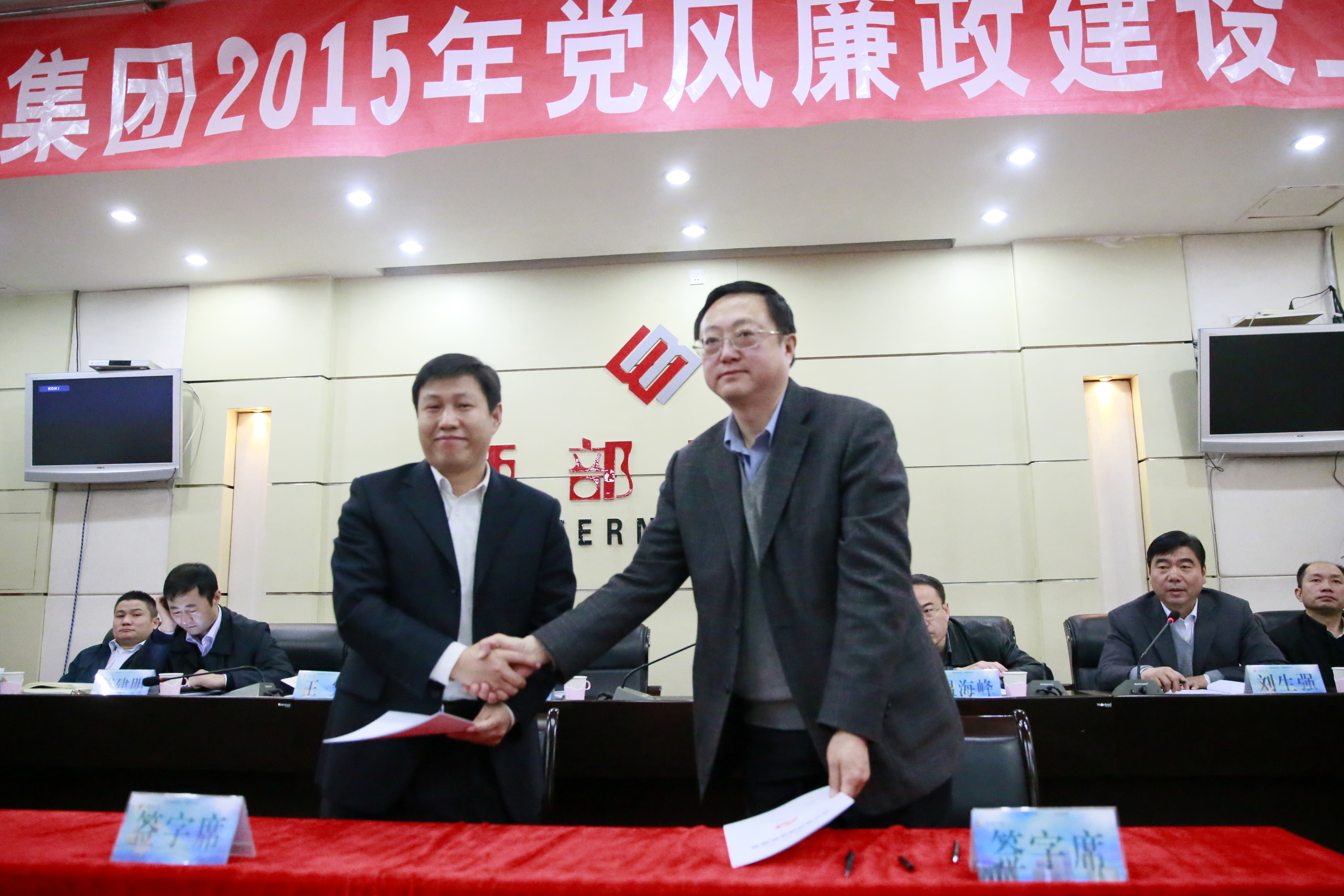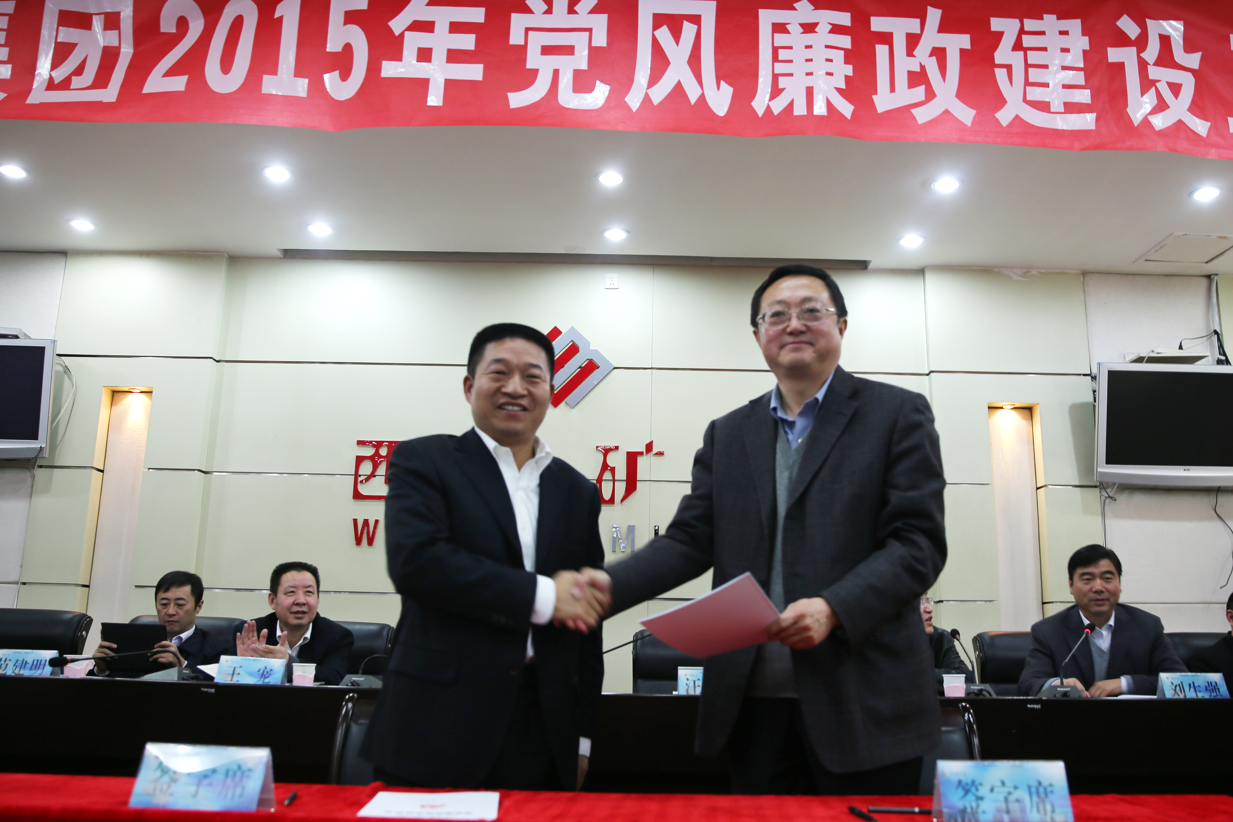 集团公司党委书记白永强同志与股份公司党委书记汪海涛同志签订《党风廉政建设责任书》
