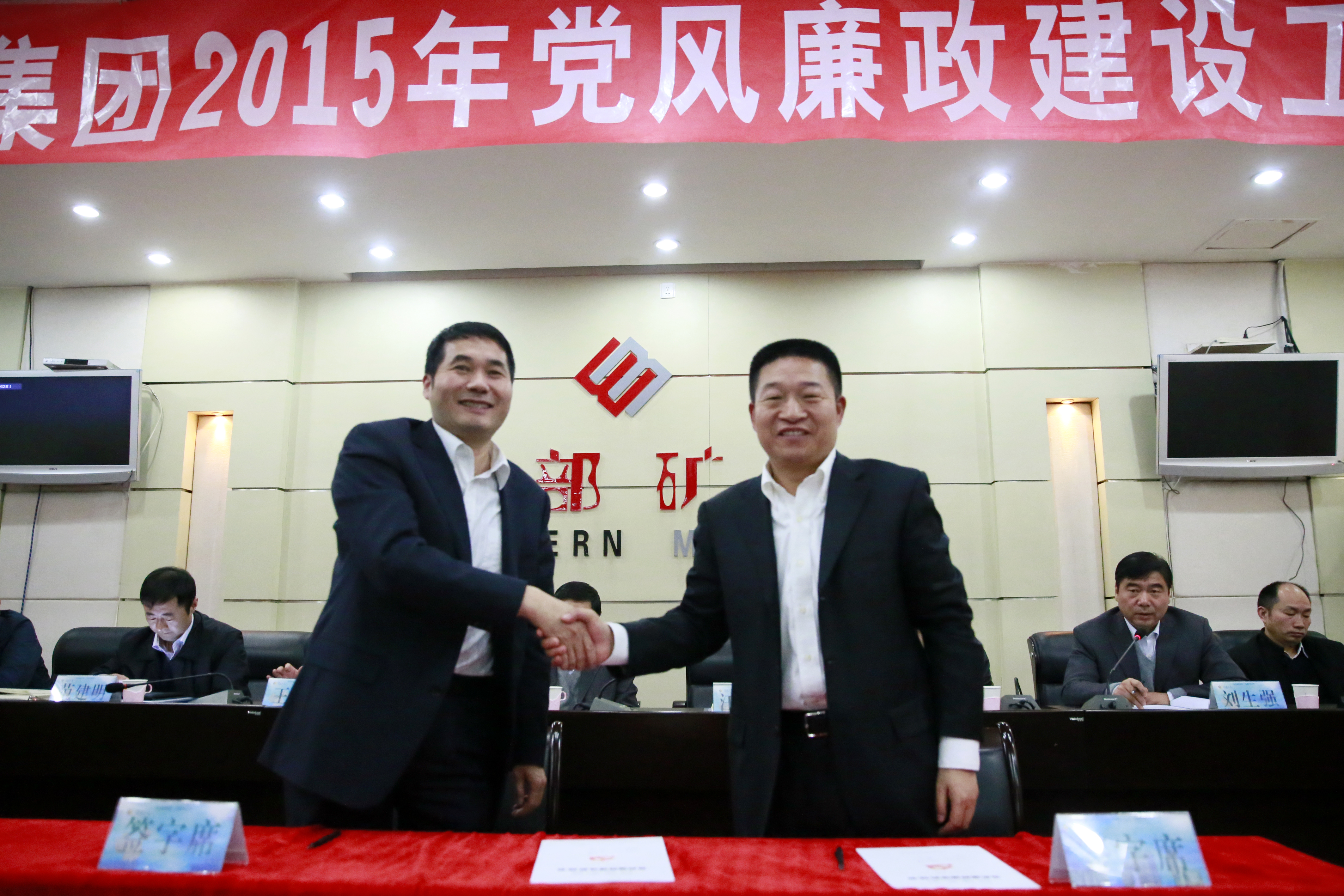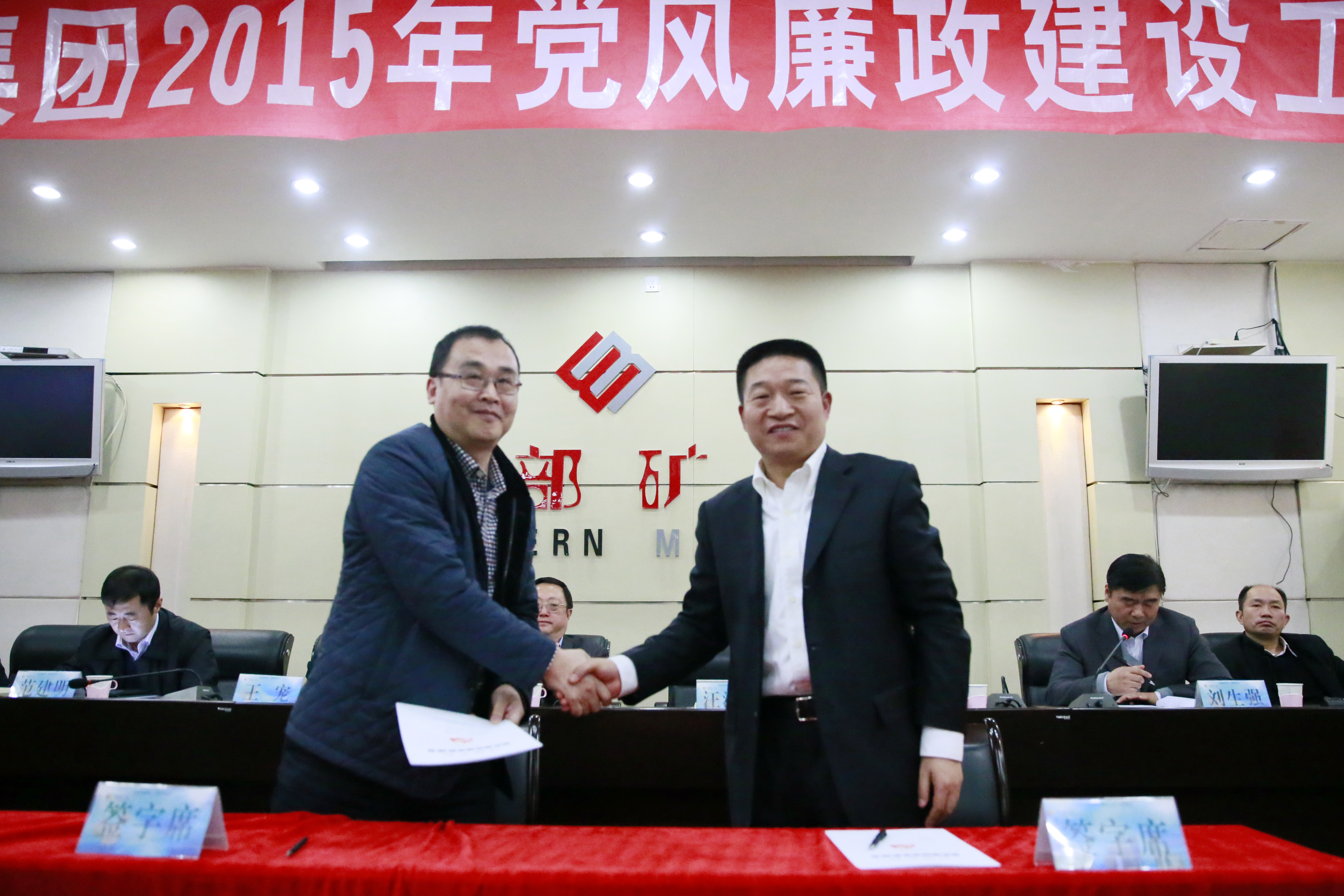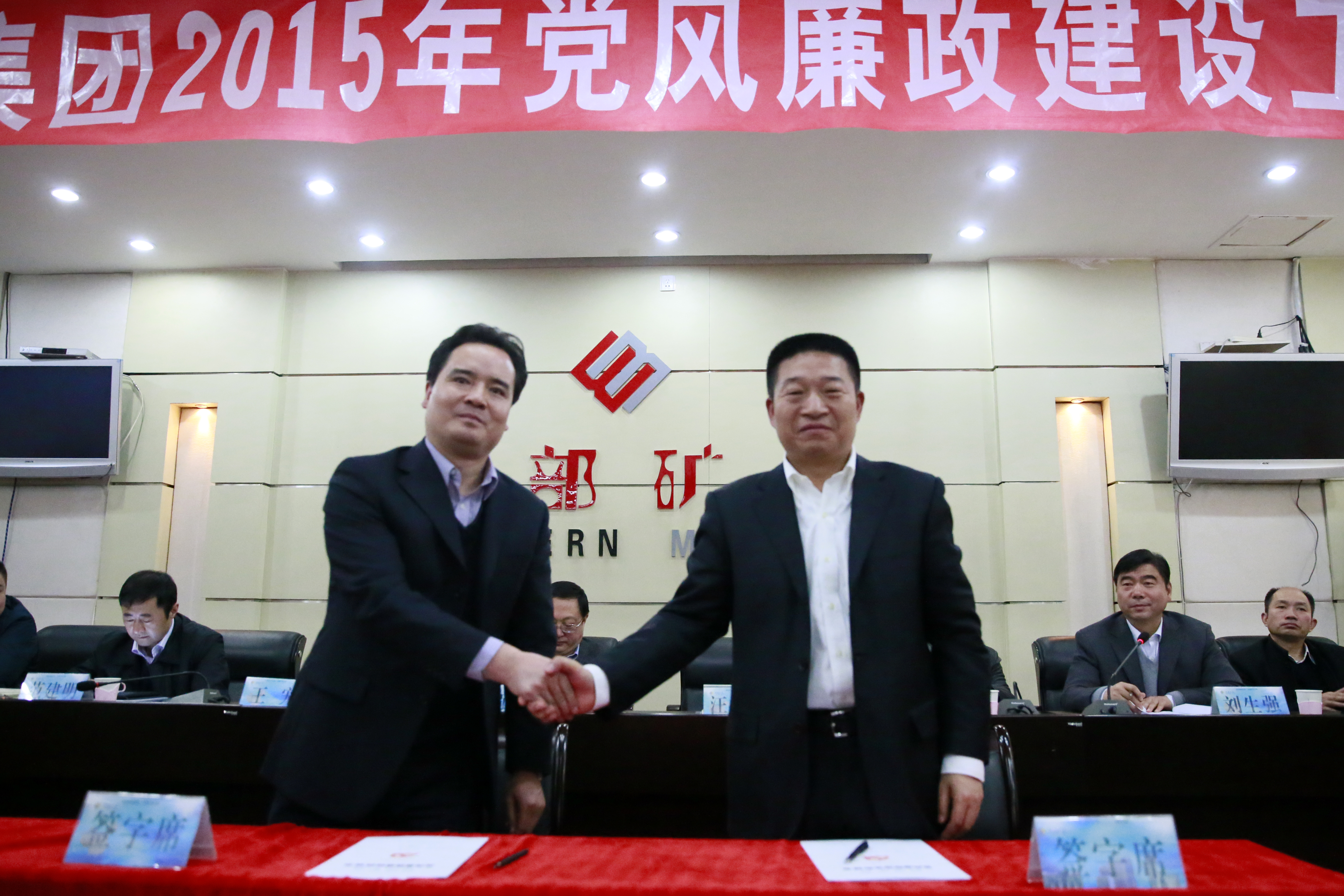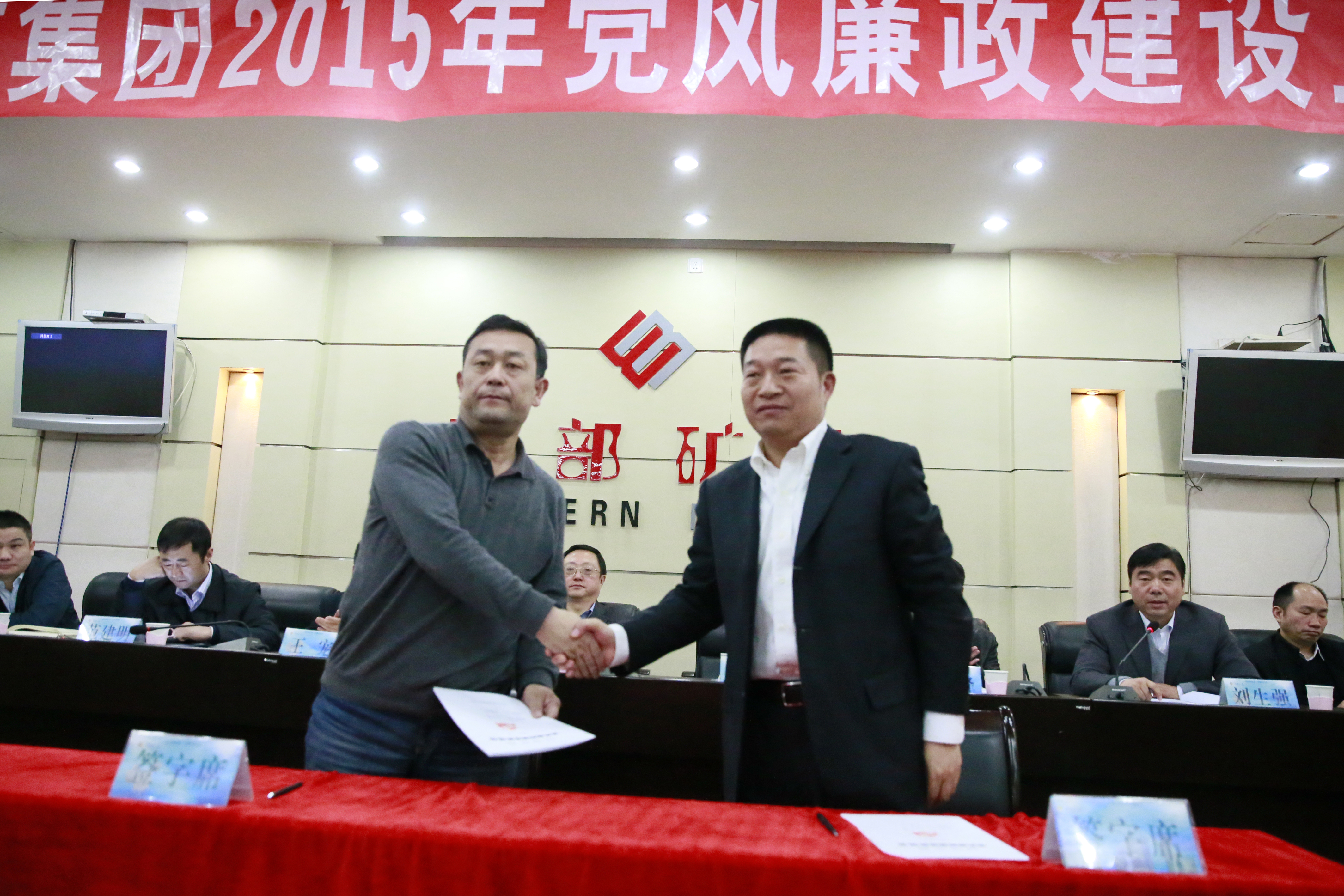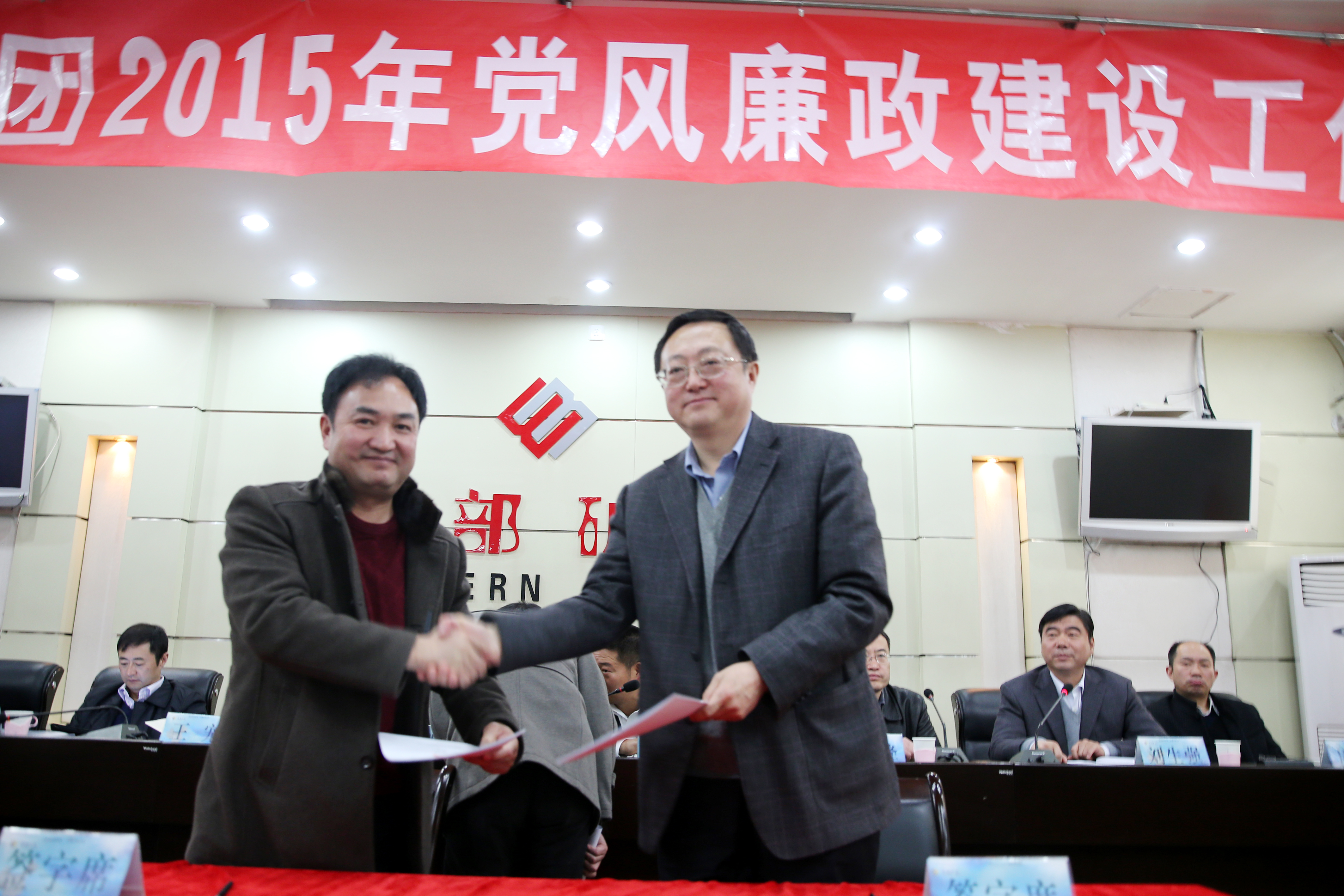 集团公司党委书记白永强同志与股份公司党委书记汪海涛同志签订《党风廉政建设责任书》