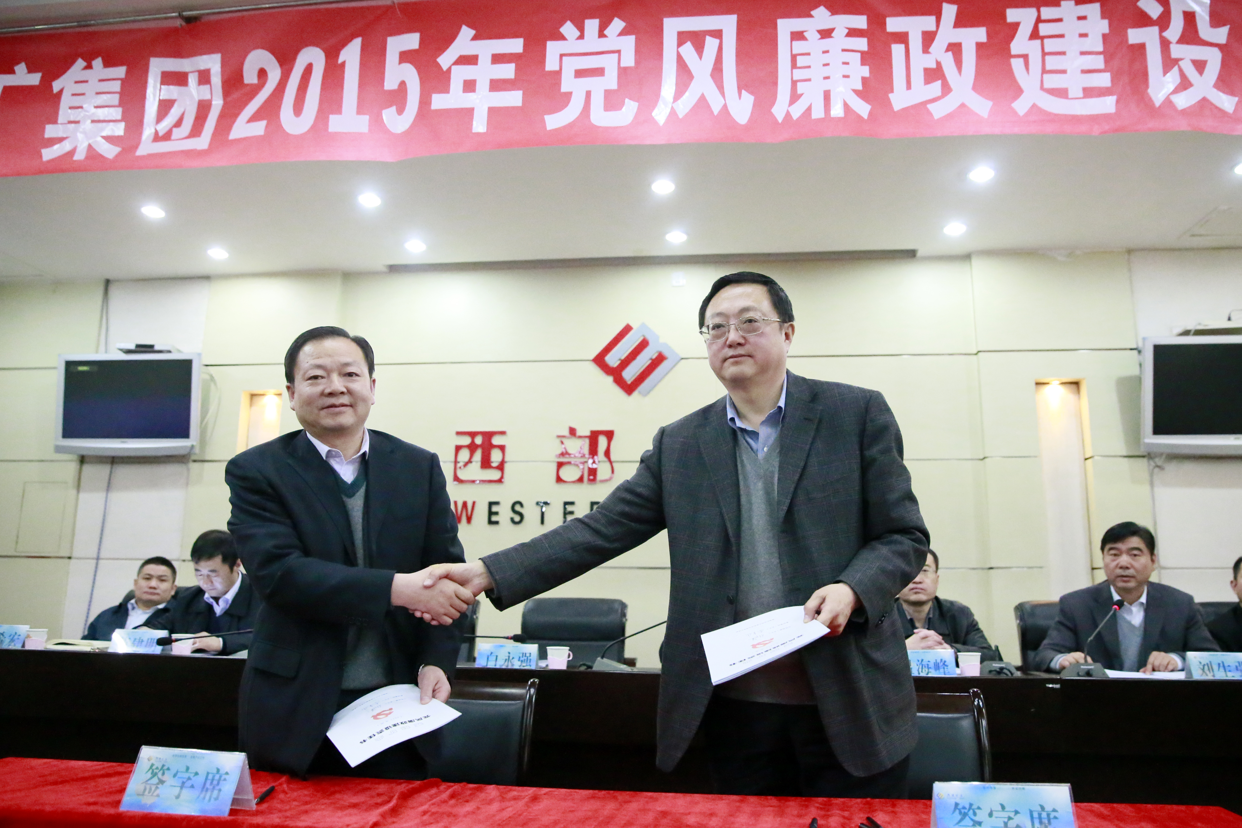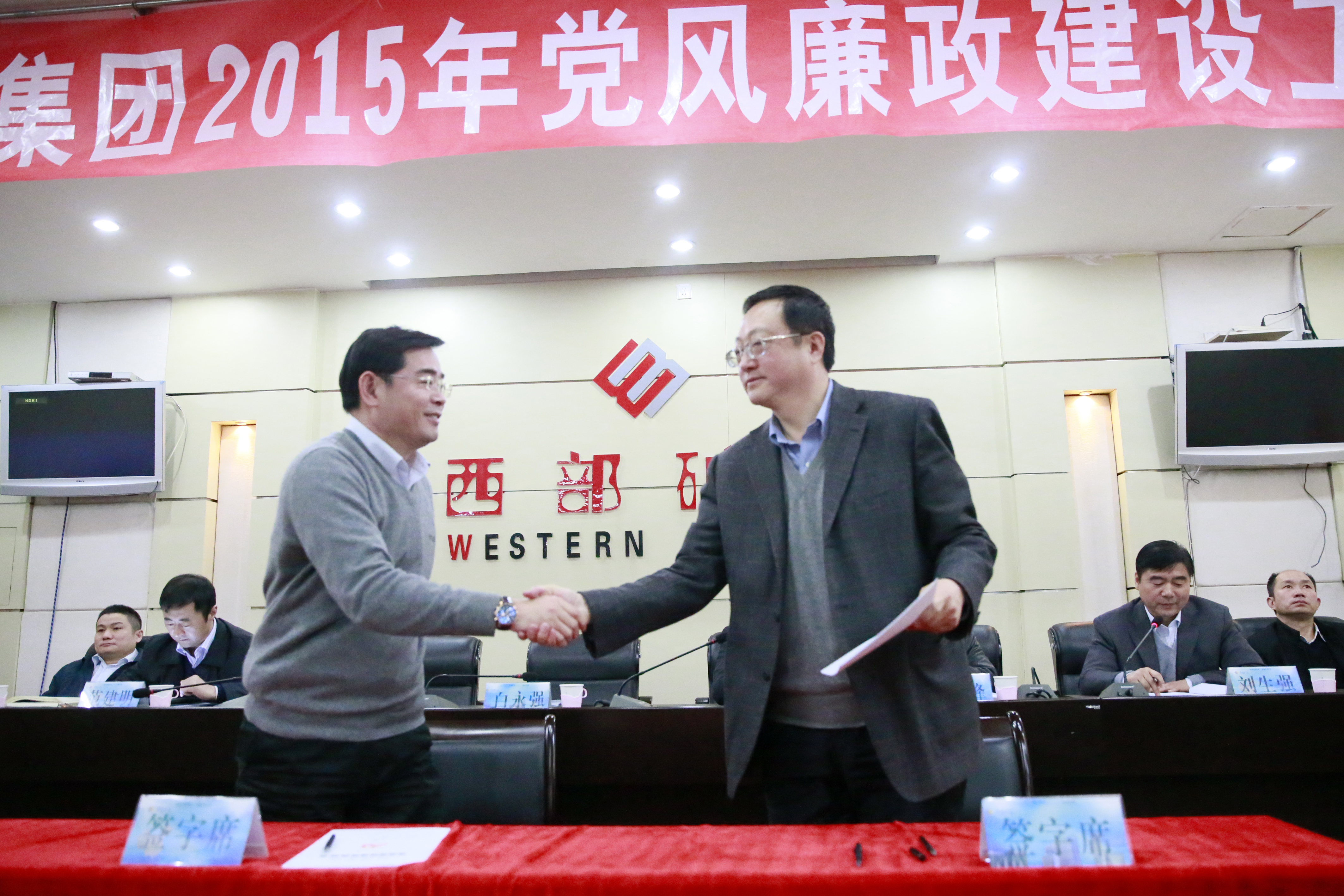 会上,集团公司党委书记白永强同志分别与股份公司、盐业公司、西宁宾馆、会东大梁矿业、西部镁业、西部化肥、财务公司、西矿建设公司党组织主要负责人签订了《党风廉政建设责任书》;股份公司党委书记汪海涛同志分别与锡铁山分公司、冶炼事业部、玉龙铜业、西部铜业、四川鑫源、四川夏塞、青海赛什塘铜业公司党组织主要负责人签订了《党风廉政建设责任书》。会议要求,各级党组织负责人与所属单位中层以上党员干部逐一签订《党风廉政责任书》。