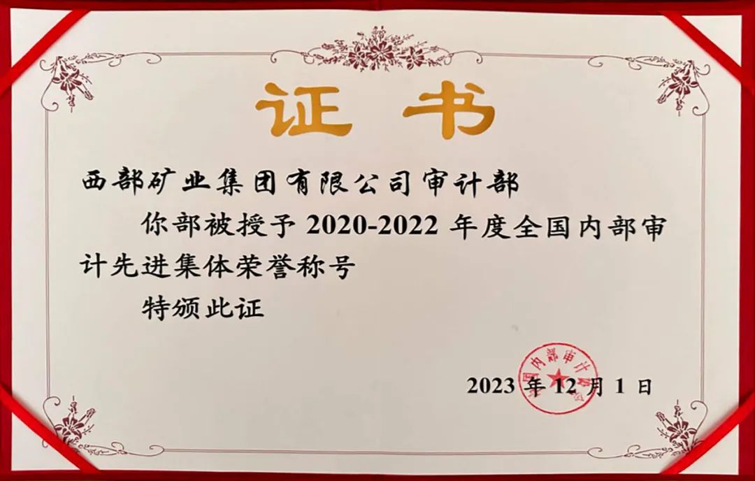 审计部讯 日前,全国内部审计先进集体和先进工作者评选表彰大会在京召开,西部矿业集团有限公司审计部荣获“2020至2022年全国内部审计先进集体”荣誉称号,这是继2020年后再次荣获全国内部审计工作最高荣誉。