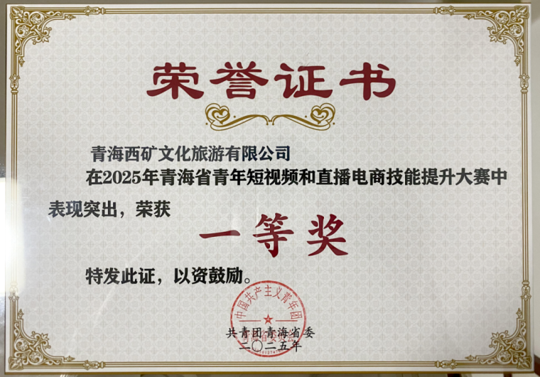 公司团委讯 近日,由共青团青海省委联合省总工会、省妇联、省残联共同主办的“2025年青海省青年短视频和直播电商技能提升大赛”总决赛圆满落幕。青海西矿文化旅游有限公司凭借深耕本土的文旅积淀与创新鲜活的推介呈现,在竞争激烈的家乡文旅推介赛道中脱颖而出荣获一等奖,以青春力量彰显责任与担当。