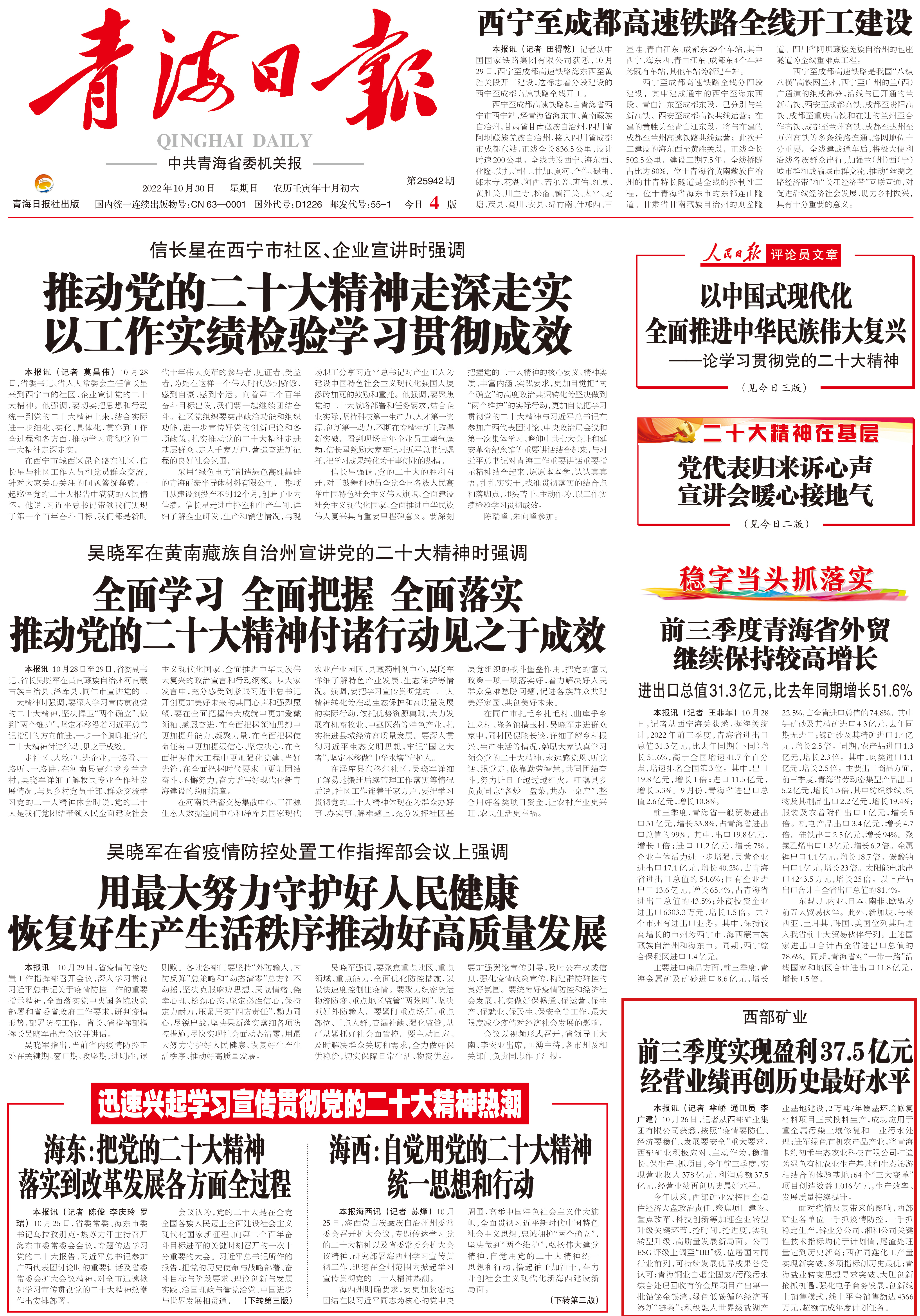 本报讯 (记者 芈峤 通讯员 李广建) 10月26日,记者从西部矿业集团有限公司获悉,按照“疫情要防住、经济要稳住、发展要安全”重大要求,西部矿业积极应对、主动作为,稳增长、保生产、抓项目,今年前三季度,实现营业收入378亿元,利润总额37.5亿元,经营业绩再创历史最好水平。