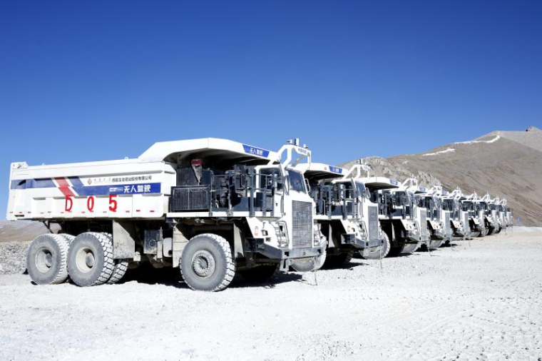 图为:西藏玉龙铜矿无人驾驶矿车