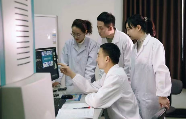 图为:科研人员进行课题研究