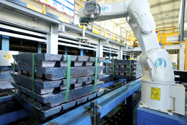 看,新质生产力的培育助力生产更加高效——在该公司智慧管控中心,6块大屏3个系统运行模式详细显示着各分子公司生产经营相关指标数据,生产管理、应急指挥、设备监控……一项项实用且强大的功能,让人切身感受千里之外生产单位忙碌有序、欣欣向荣的生产氛围。在智能化转型的浪潮中,玉龙铜业全球首个海拔5000米高原露天矿山无人驾驶矿卡运营标杆,实现矿山智能化运输设备再升级;青海铜业电解车间内自动码垛机器人不知疲倦地抓取,一摞摞阴极铜板经过机械臂高效快捷的剥离,随即打包入库,为青海省工业稳增长作出应有表率,贡献更大力量;湘和公司内两条全自动智能化锌冶炼熔铸产线全力运转,为锌冶炼行业智能工厂建设起到示范引领作用;青海盐业AGV自动导引叉车,实现订单库存动态实时关联、更新和产品搬运出入库全流程自动化。