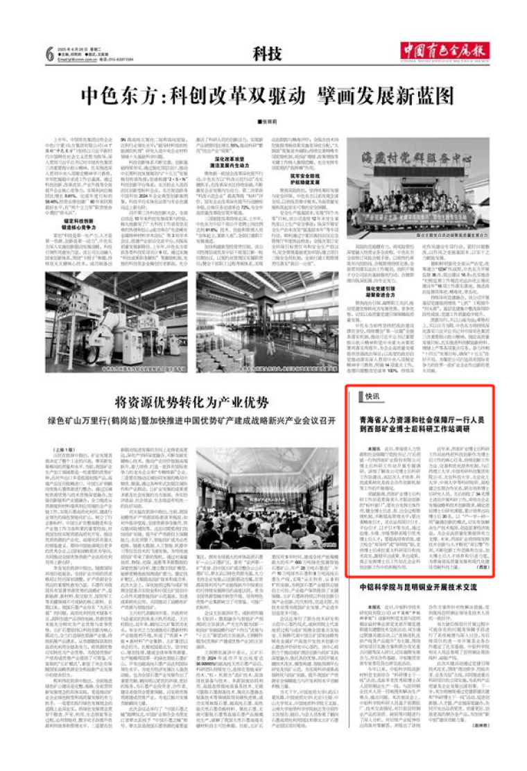 本报讯 近日,青海省人力资源和社会保障厅党组书记、厅长胡斌一行到西部矿业股份有限公司博士后科研工作站开展专题调研,详细了解该公司博士后科研工作站建设,高层次人才培养、科技成果转化及政企合作创新机制等工作的开展情况。