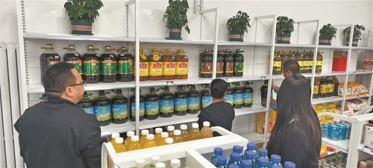 “朔乡雨露”菜籽油摆上货架。大通县委组织部供图