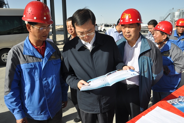 在施工现场,李增荣同志首先代表西部矿业集团公司对常委王晓副省长到西部镁业指导工作表示欢迎和感谢,同时,代表西部矿业集团公司就项目建设进展情况、发展规划等做了详细汇报。