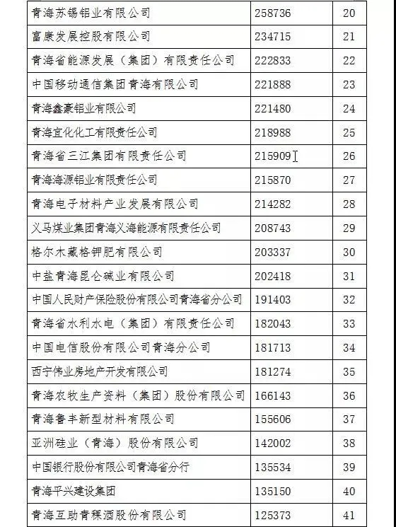 青海企业50强榜单