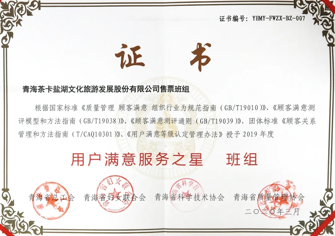 青海茶卡盐湖文化旅游发展股份有限公司售票班组