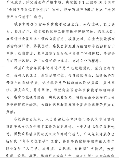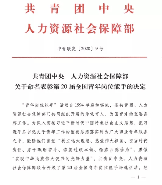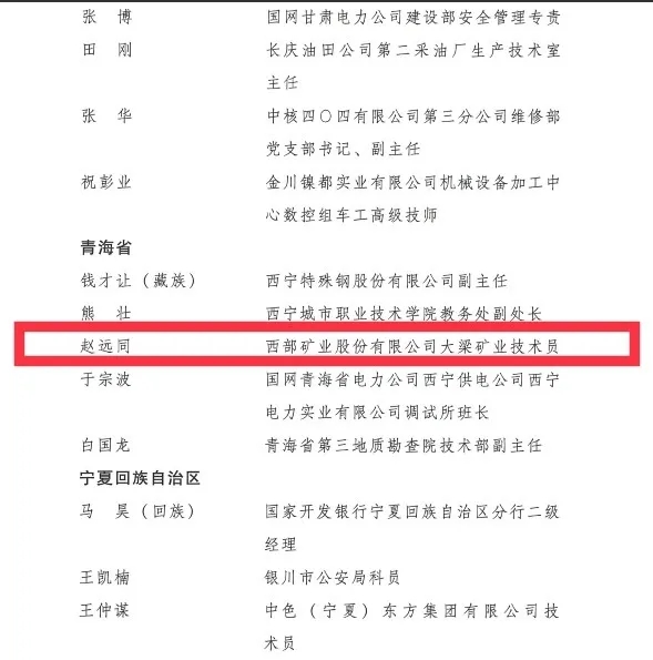 近日,共青团中央、人力资源社会保障部联合下发《关于命名表彰第20届全国青年岗位能手的决定》(中青联发〔2020〕9号),西部矿业股份公司大梁矿业技术员、玉龙铜矿改扩建工程青年突击队成员赵远同荣获“全国青年岗位能手”荣誉称号。