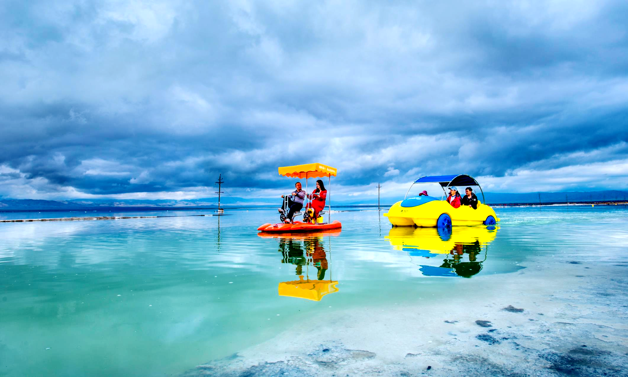 茶卡盐湖资源珍贵、环境天然,景区坚持“保护与开发并行”原则,提出了“坚持保护自然景观、挖掘盐业文化、丰富旅游内涵”的发展战略。一是明确划分游览区、开采生产区、生态休养区,对盐湖进行划区域定时休养,丰富再生盐层,以消除旅游活动造成的不利影响。二是景区坚持旅游发展与生态环保并重理念,将盐湖环境保护、草原湿地保护、旅游环境保护、环卫治理作为重要内容,与景区建设同步计划安排。经过多年努力,景区环境面貌逐年改善,将茶卡盐湖从寸草不生的盐碱滩涂建设成规划整洁、干净卫生、草木丛生、风景优美、野生动物栖息的旅游胜地。三是通过换土、铺设隔离膜及开展土质改善等工作,目前景区湿地恢复平整16万㎡,绿化面积10.1万㎡,栽植面积10.15万㎡,栽植各类苗木253.8万株,景区绿化率达到100%;修建引水沟7910m,对湿地进行引水灌溉提高绿植成活率,绿植成活率达到95%以上。四是围绕提升生态环境目标,建成2座污水处理站,有效处理景区产生的污水,经过处理后的中水用于景区绿植浇灌,全面提高景区水资源再利用率,解决景区污水处理问题,保护盐湖水生态。