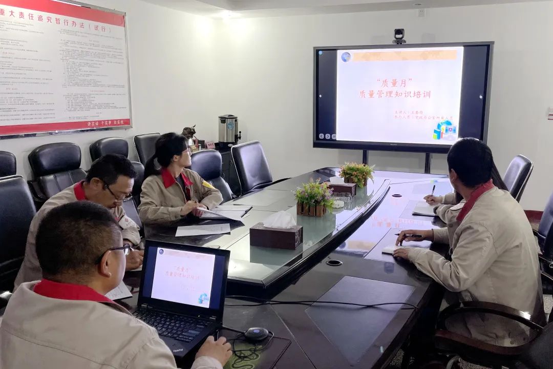 锡铁山分公司研究制定活动方案,成立“质量月”活动领导小组,积极组织开展质量月宣传活动,在办公楼电子屏全天循环滚动播放质量月主题,在各车间部室醒目位置悬挂质量月主题宣传横幅,积极利用OA办公系统,微信群等线上方式向分公司全体员工转发质量月活动文件,号召全员积极参与到质量月活动中。各车间、部室利用班前、班后会时间学习质量月文件,积极开展质量月培训学习活动,财务管理部组织开展会计信息质量问题及处理对策培训,会计信息质量典型案例分析培训;选矿车间、质量工艺技术管理部、设备能源部等积极开展质量知识培训、操作技能培训;质量工艺技术管理部、选矿车间积极组织召开质量分析与指标提升专题交流学习会议。同时以“质量月”为契机,积极提供井下、选厂指标提升的合理化建议,进行“小改小革”,开展QC小组讨论,开展各类生产经营数据质量自查,持续提高产品质量,改善生产指标。