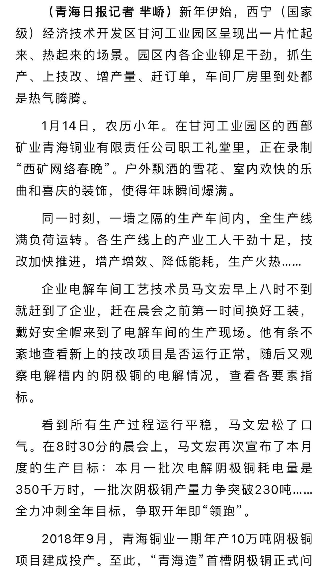 近日,《青海日报》“新春走基层”栏目刊发稿件,报道公司开年即“领跑”,冲刺“全年红”的生动实践。