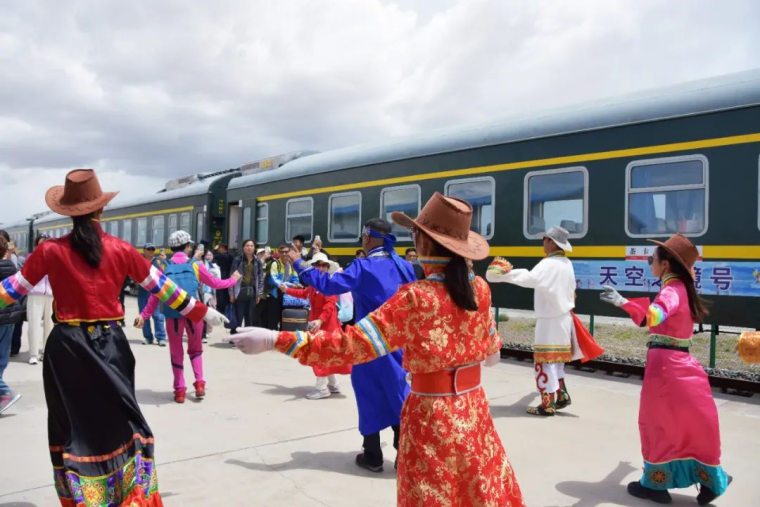 6月28日上午8:05,今年首趟“天空之镜号”旅游列车从西宁站驶出,中午12:28,旅游专列抵达茶卡盐湖景区,在茶卡盐湖景区停留5小时后返回西宁市。此专列以闻名遐迩的“天空之镜·茶卡盐湖”景区命名,连续8年在旅游旺季每日穿梭于西宁市与茶卡盐湖景区之间,为游客提供便捷的交通服务,这也是青海省唯一一列直通旅游景区的列车。