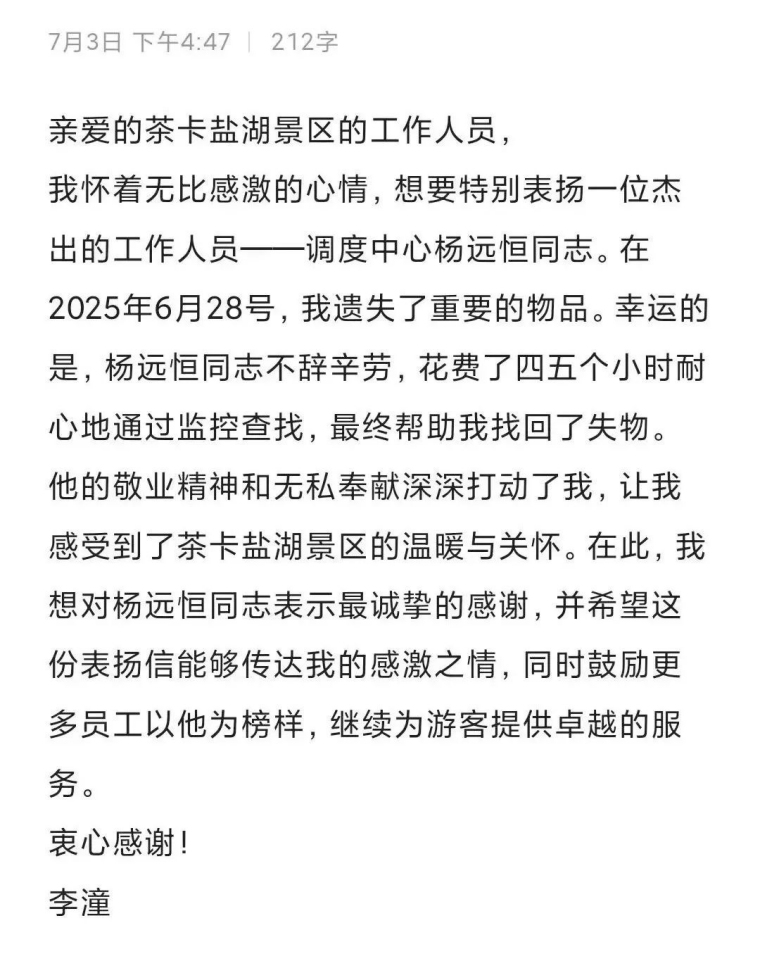 据统计,仅7月份以来,景区已帮助游客找回遗失手机、钱包、相机、书包等物品149件,救助高反、受伤、突发疾病游客178人,收到感谢信和锦旗12个...... 一句贴心的提醒、一次及时的帮助,既能解决实际问题,更能让游客感受到被尊重与关怀,这不仅是流程化的管理,更是人性化的传递。它像一根隐形的线,将景观资源与游客需求紧密相连,最终转化为景区的口碑、客流与长远发展的动力。