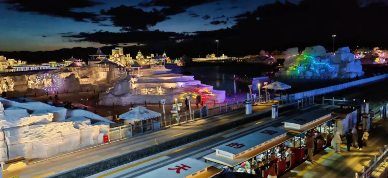 茶卡盐湖景区灯光璀璨游人如织