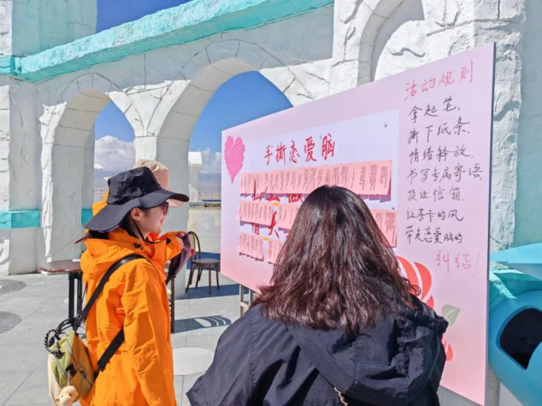 满载浪漫青春气息的大巴行驶在广袤的草原上,俊男靓女们的思绪随着主持人精彩的讲解飘向了此行的目的地——茶卡盐湖。“我们今天将在以爱情为主题的‘茶卡奇缘’盐雕主题区域开展游戏互动,游览区与瑶池仙境、盐马古道等共同组成‘世界最大的户外盐雕艺术群’,并以盐白、湖蓝、粉红色彩为搭配,展现不同的浪漫场景,白天是彩色艺术殿堂,夜晚变身光影魔幻世界,是拍照打卡的宝藏地。”主持人动情介绍,青年们期待满满。