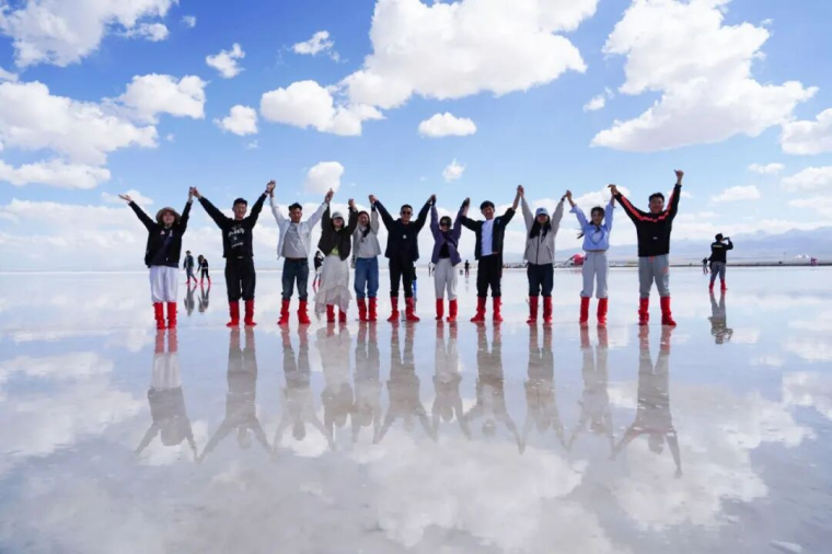 “水映天,天接地,人在湖中走,宛若画中游……”青年们的到来让本就美丽的茶卡盐湖更添了一丝活力与浪漫。活动现场,一系列精心设计的游戏环节让此次联谊活动达到了高潮。无论是多人参与的“温暖的抱抱”“爱的搬运工”,还是考验默契与技巧的“一圈到底”“爱的投喂”,都让大家在互动中加深了对彼此的了解和好感。现场轻松愉悦的氛围也让大家卸下了工作的疲惫,尽情释放多巴胺!