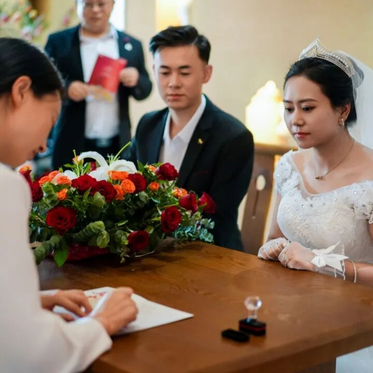 当温暖的阳光映红新娘、新郎的脸颊,也为高光的婚礼仪式铺上红地毯;当欢快的旋律响起,喜庆连着风撒遍布每一个角落,婚礼仪式郑重开始。2025面国旗与苍劲胡杨交织,营造出家国同庆、婚姻庄严的浓厚氛围。新人们在国旗下宣誓结为夫妻,以实际行动诠释“爱情与家国同在”的价值观,传承爱国爱家、相亲相爱的社会主义家庭文明新风尚。