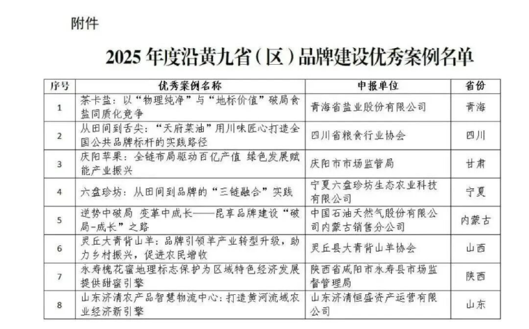 10月24日,“黄河聚动能 品牌赢未来”2025黄河品牌大会在济南召开,会上,2025年“黄河名品”公共品牌名单正式公布,公司所产茶卡湖盐凭借“茶卡”品牌“盐系天成,味由心生”的强劲实力成功入选,同时,青海盐业公司以《茶卡盐:以“物理纯净”与“地标价值”破局食盐同质化竞争》案例获评2025年度品牌建设优秀案例,充分彰显公司品牌建设的创新实践与卓越成效。