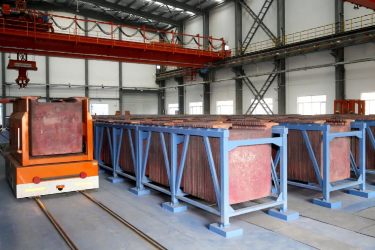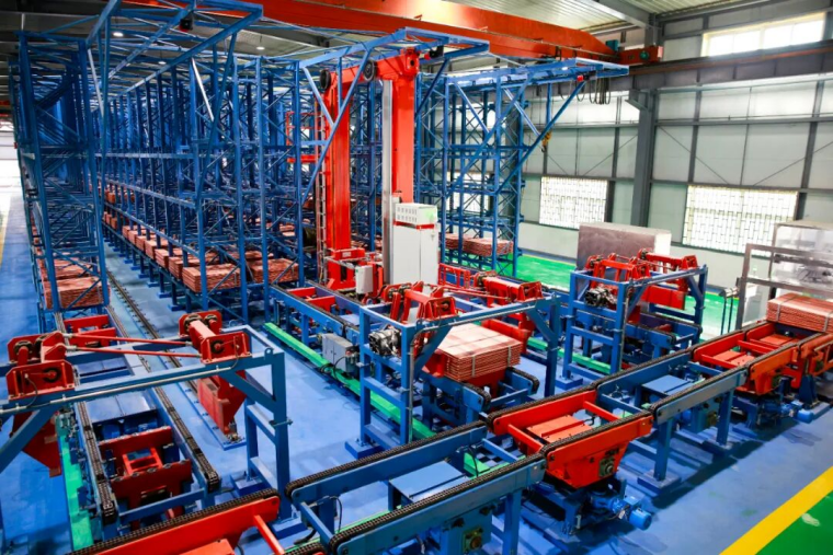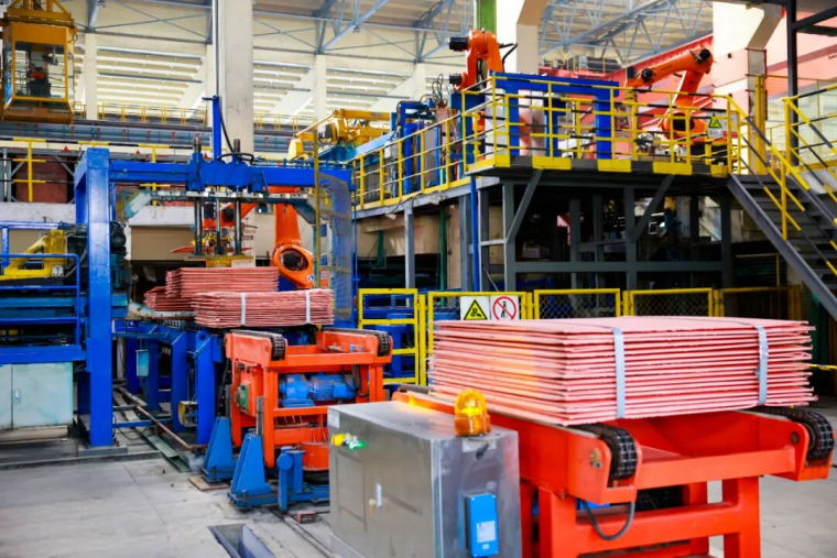目前,从冶炼车间阳极板浇筑转运到成品阴极铜入库装运,整个生产流程无缝衔接、一气呵成,人工操作误差大、成本高,效率低下,劳动强度大的局面彻底扭转,实现全流程自动化作业。电解车间自动化、数字化设备占比达100%,设备联网率达95%,不仅提升了生产效率,更确保了作业安全,降低了人工成本。