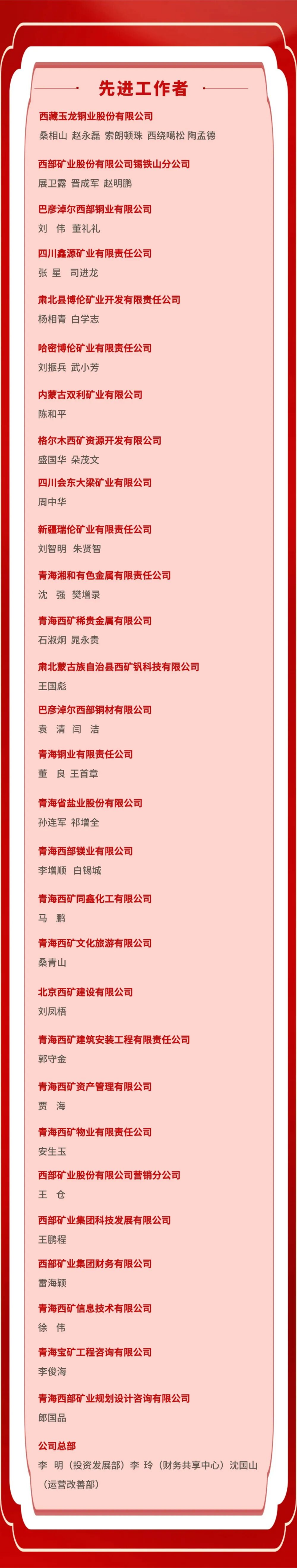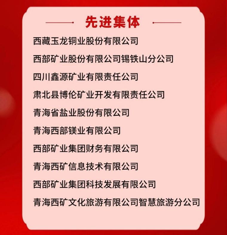 西部矿业2025年度先进集体、先进工作者名单